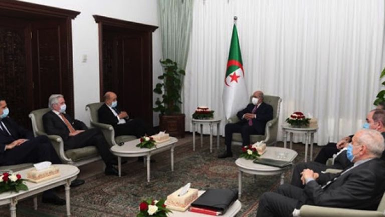 استقبل رئيس الجمهورية السيد عبد المجيد تبون، مساء أول أمس، وزير أوروبا والشؤون الخارجية الفرنسي جان ايف لودريان، في إطار زيارة العمل التي قام بها إلى بلادنا، حيث تم خلال اللقاء استعراض سبل تعزيز علاقات التعاون الثنائي بين البلدين، وضبط أجندة مختلف آليات التعاون الثنائي وعلى رأسها اللجنة الحكومية رفيعة المستوى المنتظر أن تلتئم قبل نهاية السنة الجارية، حسبما أكده بيان لرئاسة الجمهورية.