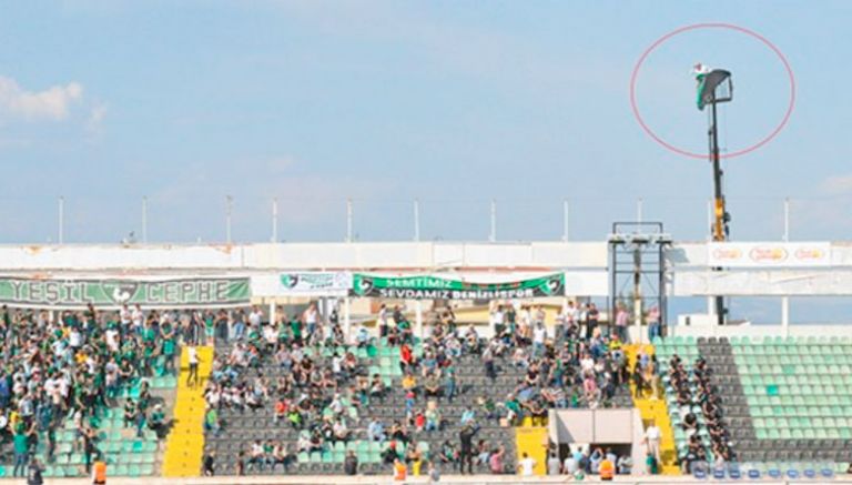 بلغ حب مشجع تركي لفريقه «حد الجنون»، إذ تحدى منعه من دخول الملعب وتمكن من مشاهدة المباراة من خلف الأسوار بطريقة لم تخطر على بال أحد، الأمر الذي أثار موجة من التندر. استأجر أحد مشجعي فريق «دنيزلي سبور» التركي رافعة، وصعد بها إلى أعلى ما يمكن من فوق أسوار الملعب، لمشاهدة مباراة فريقه ضد نادي «غازي أنتبسبور».